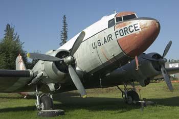 The following day involved an hours drive North of Anchorage to Wasilla to visit the Transportation Museum of Alaska. This museum covers the whole spectrum of transport with a number of trains, cars, trucks, bicycles and a few aeroplanes representing past military involvement in Alaska including a C-47, an F-104 and several helicopters. The museum also has a C-123 and a DC-3 previously operated by the FAA.