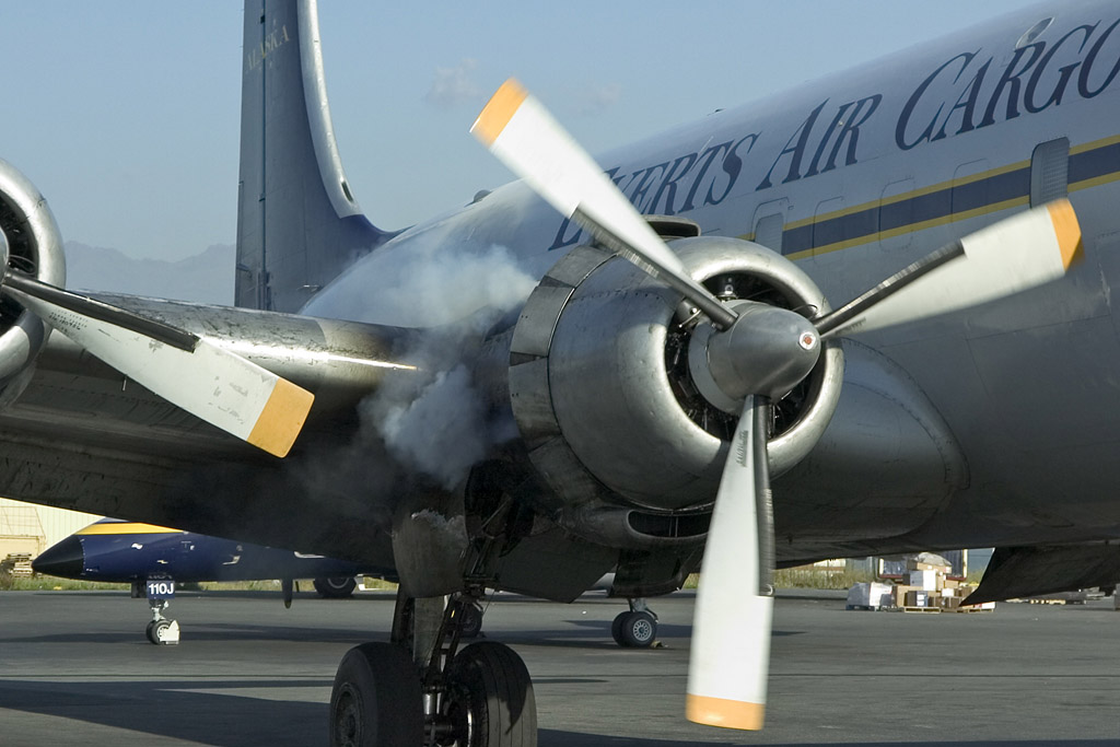 The owner of Universal had previously given his permission to photograph the aircraft and advised us that all three would be parked up until later in the day when they do evening fish runs. There were only two Sixes on the ramp both undergoing maintenance - one had an engine missing - which made both the aircraft look like they were going nowhere in a hurry. These aircraft were previously operated out in Texas and had moved to Alaska a year ago for more lucrative fish hauling duties.